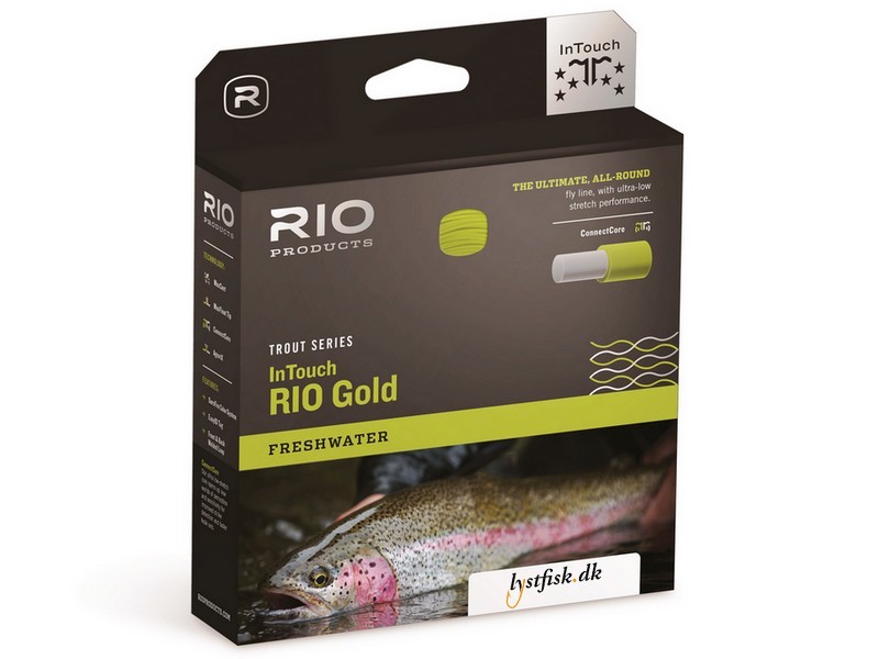 RIO Gold har et revolutionerende taperings design, der giver utrolig loop stabilitet og kastelængde, en unik profil, der muliggør kast på nært hold og en front tapering, der leverer perfekt præsentation af fluer mellem størrelse # 22 og # 2.. RIO Gold er den ultimative all round line til ørredfiskeri – InTouch serien er med RIO’s unikke ConnectCore, der giver dig forbedrede kast og krogningsevne.